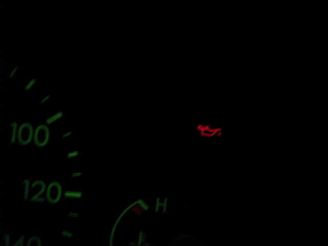 19時過ぎ、小矢部川SA手前2kmほどのところでふとメーターを見たらオイルプレッシャーランプがぼんやり点いている。