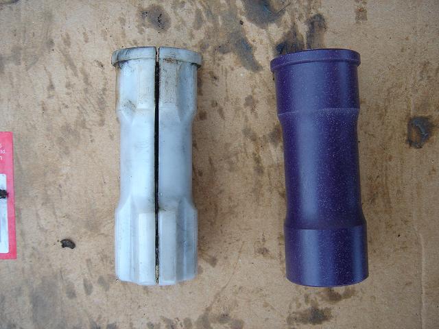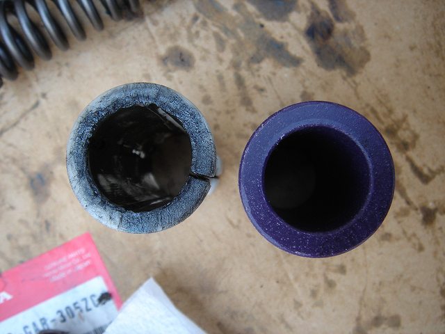 ということで左が純正のフォークパイプガイド、右がGクラの強化ブッシュ。