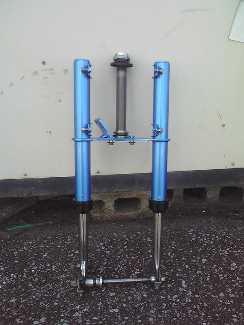 これに強化ブッシュを組み込んだインナーチューブへスライドパイプピストンを通し、穴を合わせてスプリングピンを打ち込む。