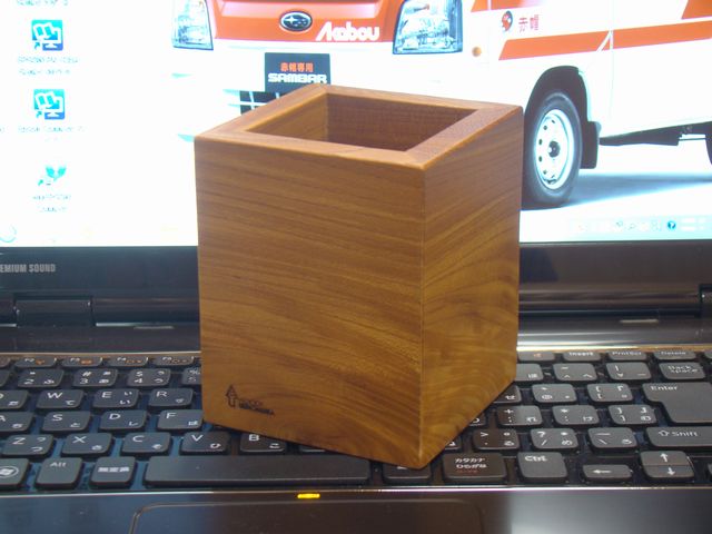 質感に惹かれて天然木のペン立てを購入。1000円は安いでしょ。