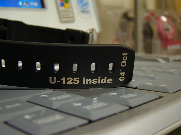 U-125のロゴと文字をあしらい、任意でベルトエンドに希望の英数字を入れた。